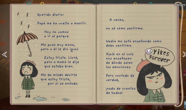 Podría hablar todo el día de ella, es increíblemente compleja y se nota mucho que la desarolladora Killmonday Games ha mejorado mucho en la creación de una protagonista diferente, niña disfuncional y humanizada. He estado dialogando con personas hasta que llegamos a la conclusión de que Misfortune entra en el espectro de "Saco de golpes". Este rol surge de la emoción de culpabilidad que el niño arrastra. Se le ha culpado de los problemas familiares, por lo que asume que recibirá los "golpes" siempre.